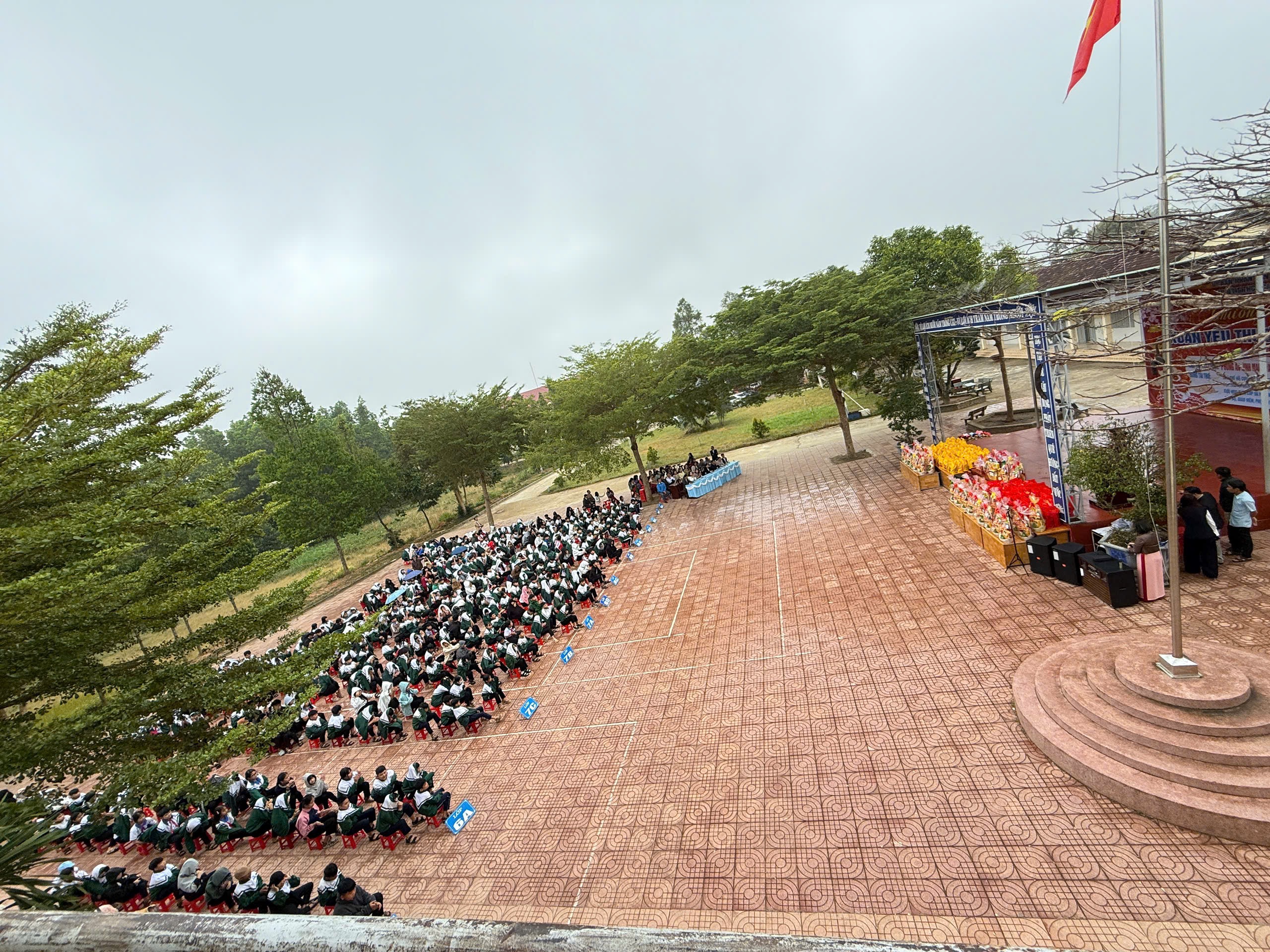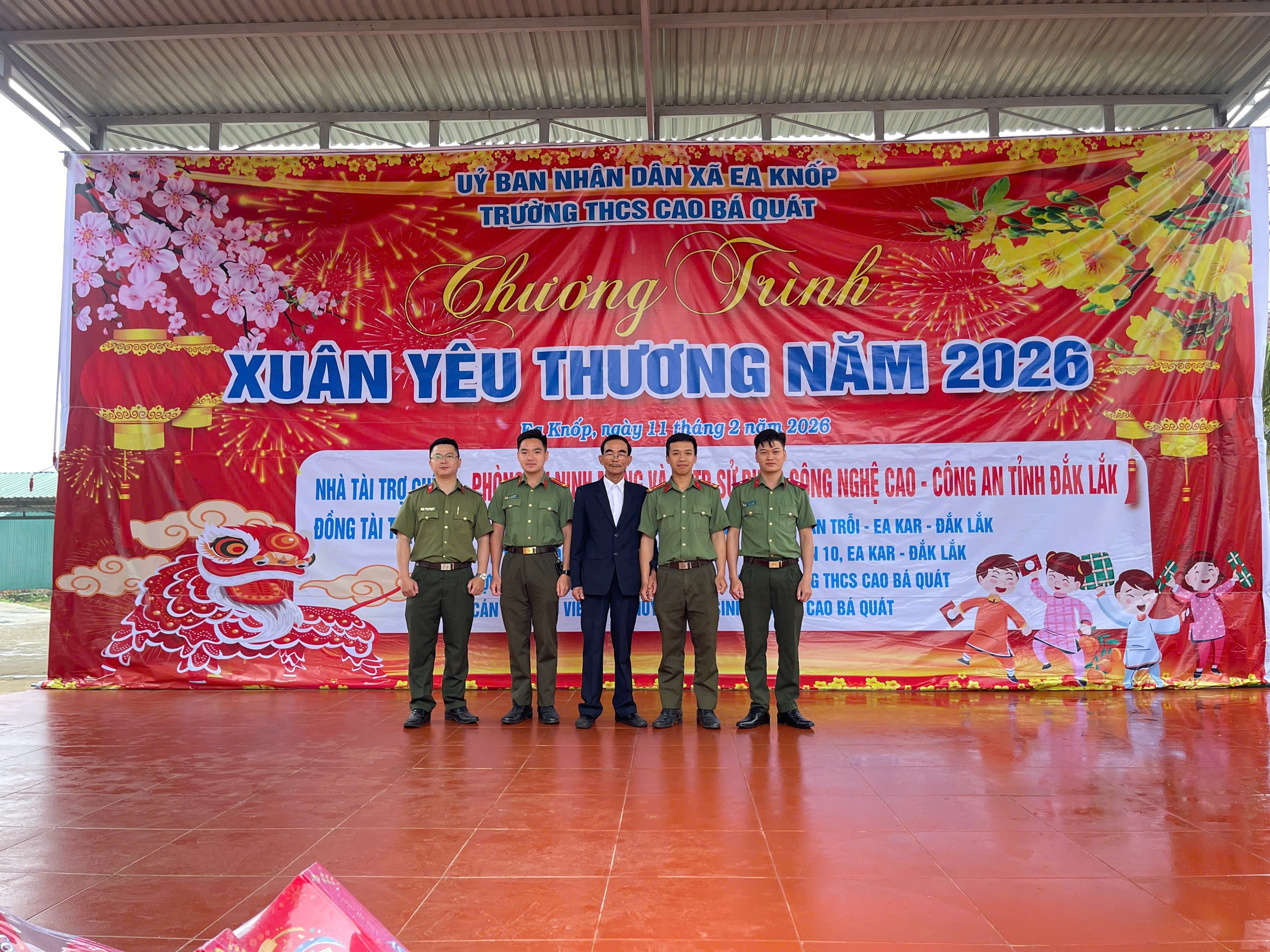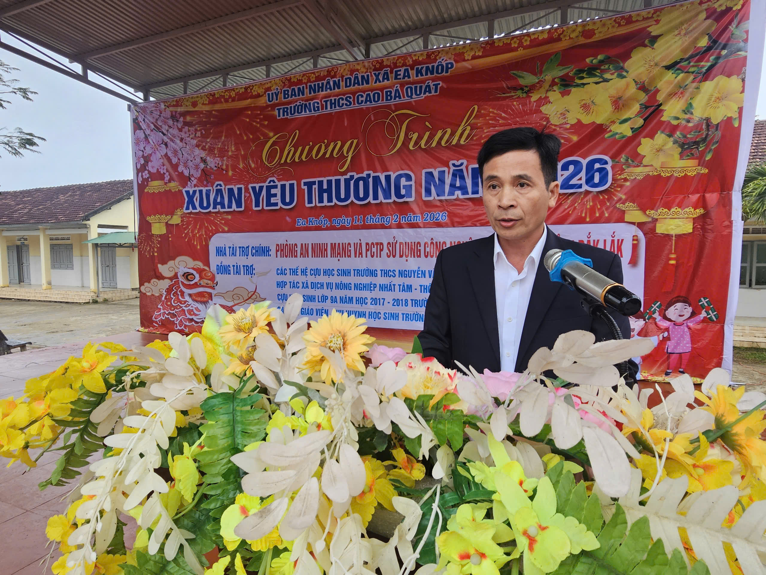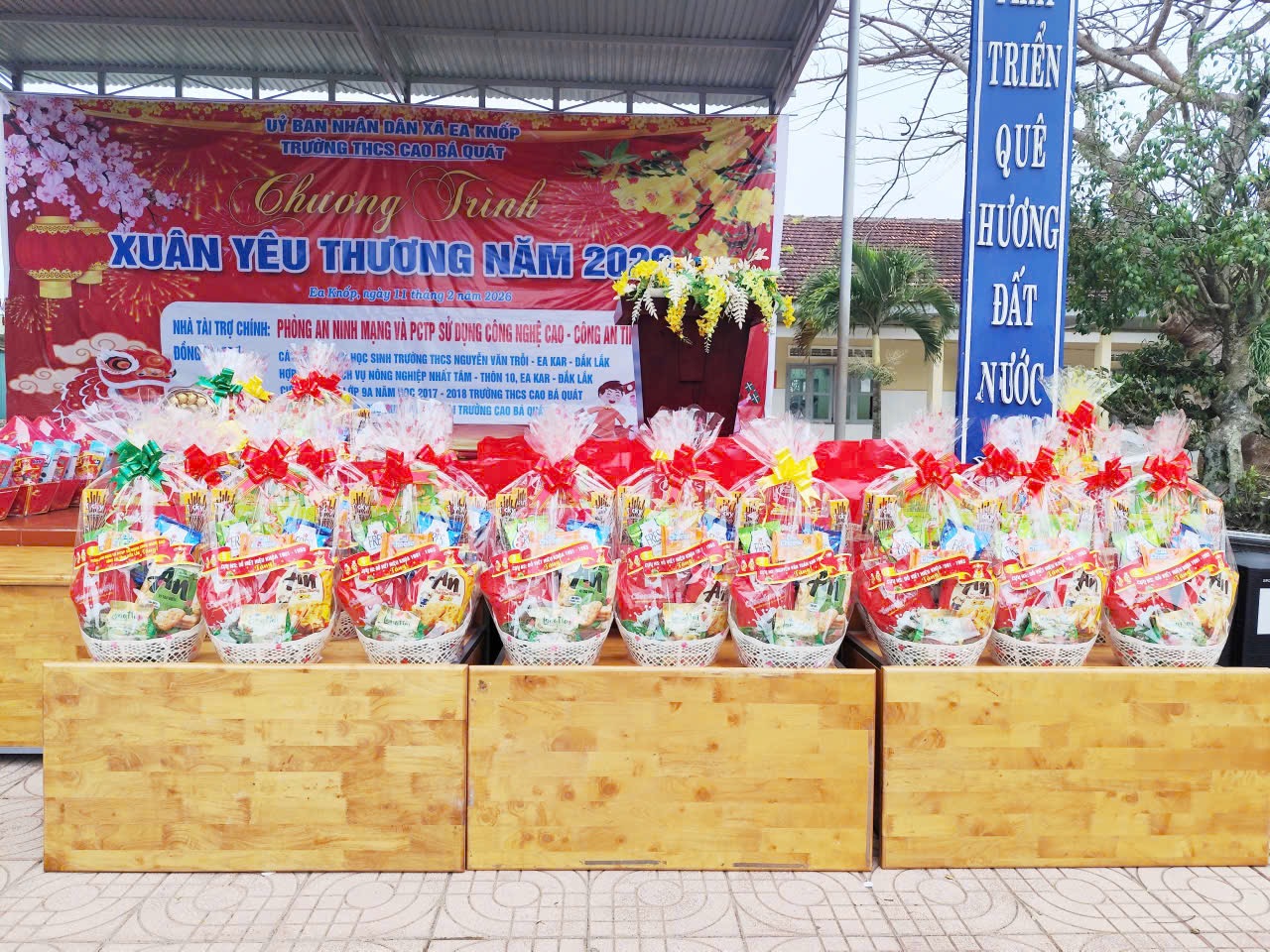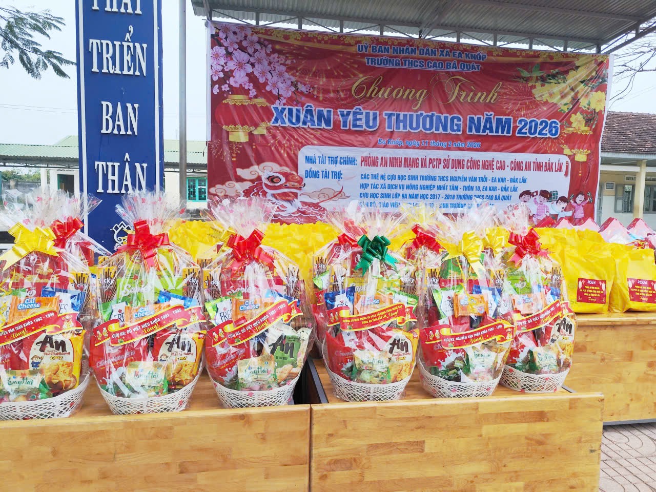 Sáng ngày 11/02/2026, trong tiết trời mưa nhẹ đầu xuân, Trường THCS Cao Bá Quát (xã Ea Knốp, tỉnh Đắk Lắk) đã tổ chức chương trình “Xuân Yêu Thương 2026” nhằm trao tặng quà Tết cho học sinh có hoàn cảnh khó khăn của nhà trường. Dù thời tiết không thuận lợi, nhưng không khí buổi lễ vẫn ấm áp, chan chứa nghĩa tình và sự sẻ chia.